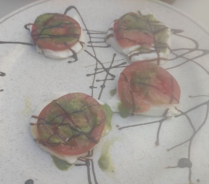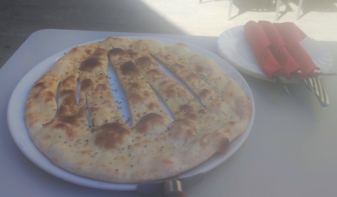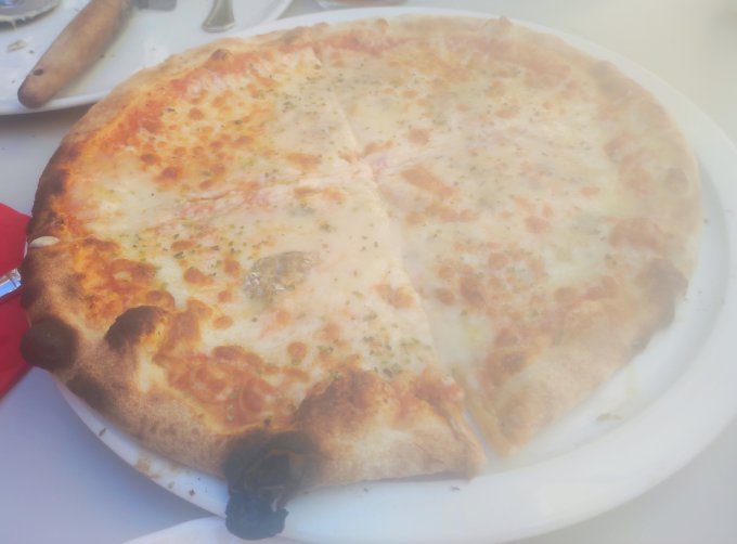 Обед: фокачча, пицца четыре сыра и салат капрезе (помидро-моцарелла-базилик) на троих.