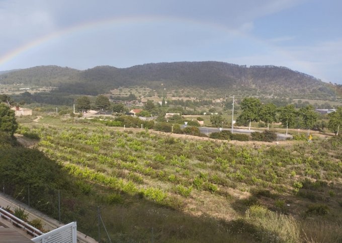 Сегодня погода не может решить, быть ли дождю или солнцу, поэтому образовалась радуга.
