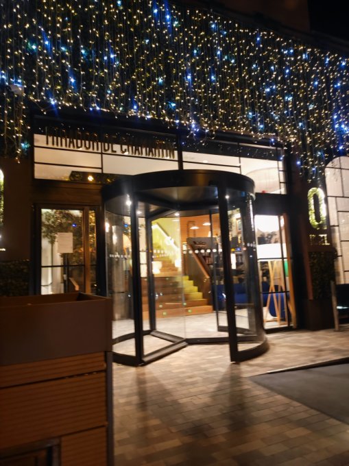 На отеле чего-то гирлянды висят, вроде как новый год. Посмеялись мы эстетике новогодней.