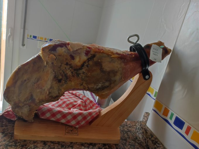 Очень важно, чтобы хамон свисал, подвешенный за копыто. Так уходит