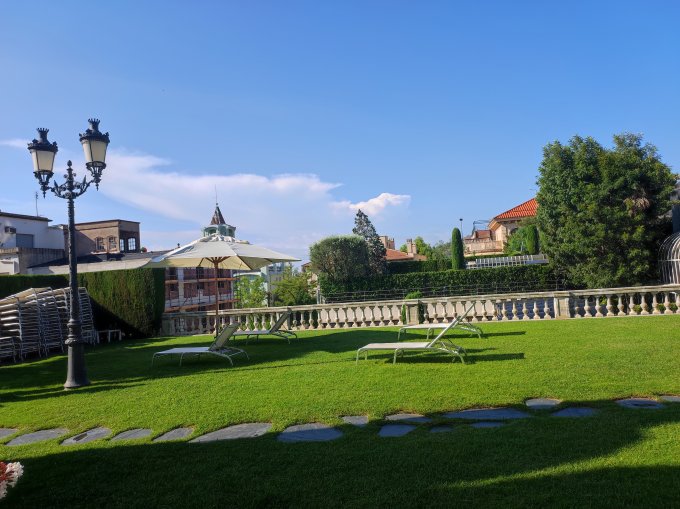 Прекрасная погода, солнце, но не жарко, ветерок дует, но теплый. По делам ездила утром в Барселону и позавтракала в частном теннисном клубе в эдаком районе для непростых. Кофе и круассан из цельной муки -это был мой завтрак.