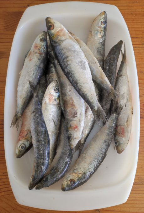 Сардинки, сельдь или другую рыбу почистить: вынуть внутренности, отнять головы и плавники, в моем случае я вынула также хребты с костями. Выложить сверху.