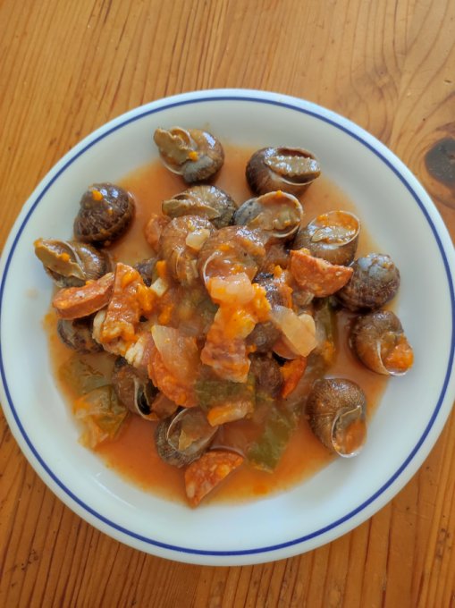 Привезли мы соседям колбасок и пива из Баварии, угостили... Соседушка, знатный повар-энтузиаст, отдариться решил и притащил тазок с улитками. Так что сегодня моллюски с колбасой на обед. На десерт фрукты.