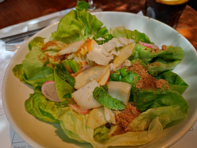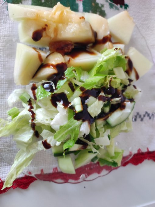 Салатик с сыром и яблоками сегодня ела в ресторане. Салатик с дыней под бальзамическим уксусом сделала дома, вспоминая путешествие по Мадейре. Там часто фрукты, а именно дыню или арбуз добавляли в салаты и мне понравилось.
