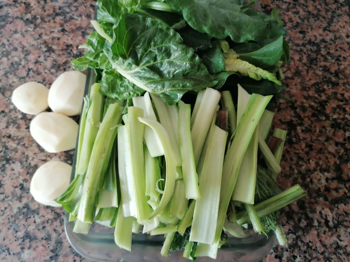 Ботва, картофель, соль, оливковое масло, Уксус яблочный или лимонный сок.