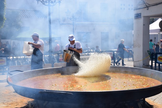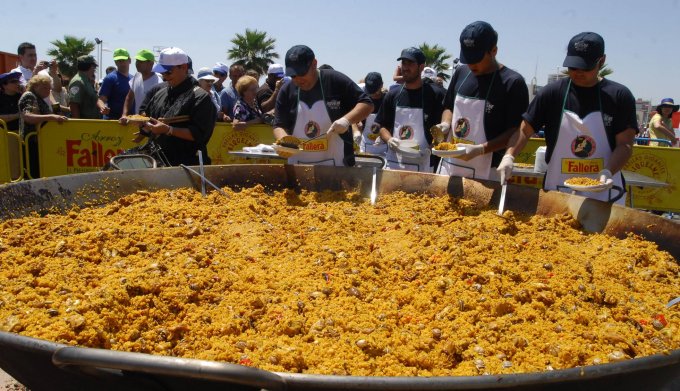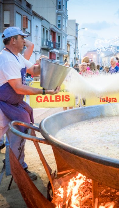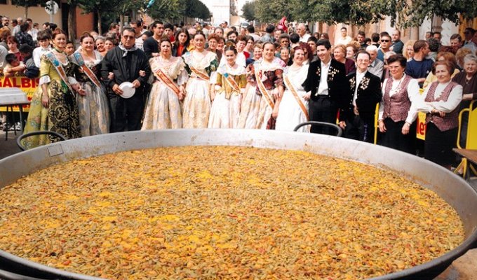 гигантскую паэлью на всех. Столы ставятся на улицах, движение