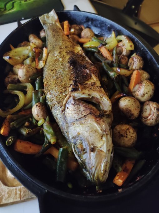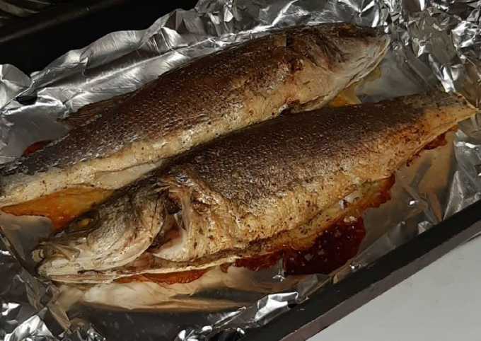 | Окунь полосатый (полосатый басс, или полосатый лаврак), приготовленный на жару |