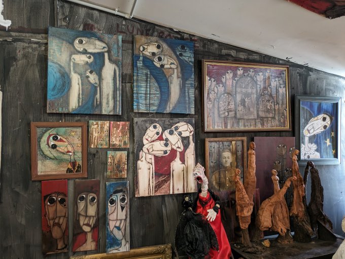 Там принципиально все было собрано с блошиного рынка, столы и стулья с ободранной краской, стены тоже с открытым кирпичом местами...
