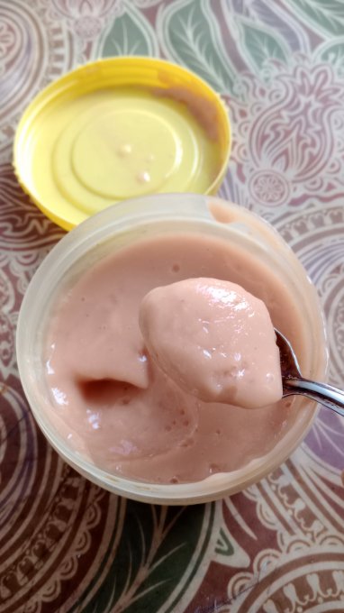 А ещё, в том же ТГ увидел интересный десерт. Берём любой компот, морс, сок, один литр, слегка нагреваем и засыпаем 4-5 ст ложки манки, доводим до устойчивого начала кипения, естественно постоянно перемешиваем. Я же взял отвар калины и перетер ягоды, избавившись от косточек. Остужаем. Как остыло, нужно взбивать блендером 10 минут. У меня блендер сильно нагрелся, пришлось взбивать 5 мин, ждать пока остынет, потом я увидел, что немного жидко получается и добавил 3 гр камеди. Взбивал ещё 5 минут, затем отправил в холодильник остывать. Калина, конечно специфичная ягода и много горечи, а вот с настоящим компотом, что бы был аромат чернослива, думаю будет просто супер. Но и так получилось очень ровная консистенция. Как назвать это я не знаю, если не сказать, то ни кто не догадается, что там манка, в рецепте было написано просто - десерт.