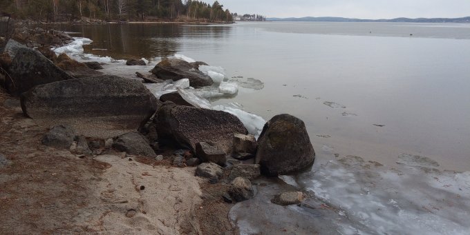 Ну а позавчера велопрогулка принесла массу впечатлений. На берегу озера, у берега в кустах, обнаружил чью то брошенную лодку, без весел, слегка притоплена в задней части, с трапами и без бортовых номеров.. то ли шквалом сорвало у какого частника в поселке, то ли угнали, да бросили, а может... пришел какой рыбак на остров, забросил весла на берег, а лодку плохо вытащил, она и уплыла, оставив робинзонить незадачливого удильщика!