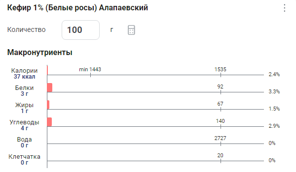 | Кол-во | Калории | Белки | Жиры | Углеводы | |