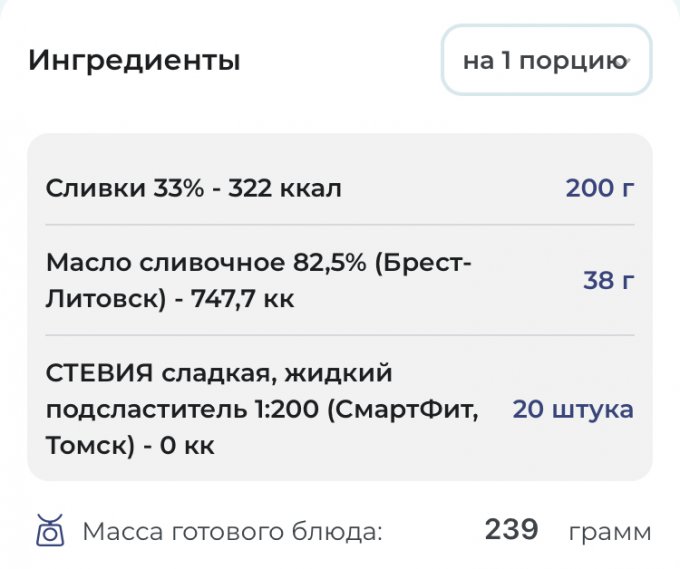 | Кол-во | Калории | Белки | Жиры | Углеводы | |