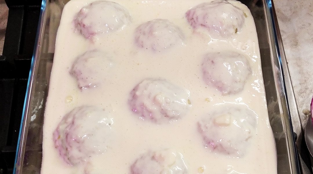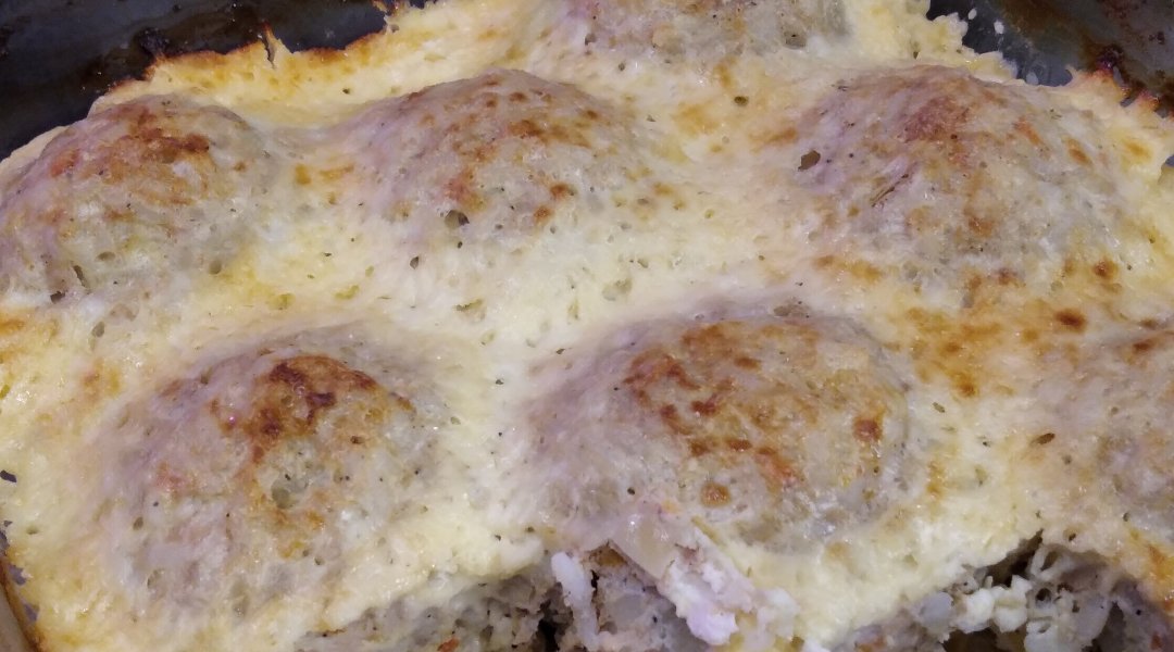Залить тефтели получившимся соусом, накрыть фольгой. Поставить в духовку на 30-35 минут (температура 180 градусов), по окончании снять фольгу и оставить до зарумянивания. По желанию можно посыпать зеленью.