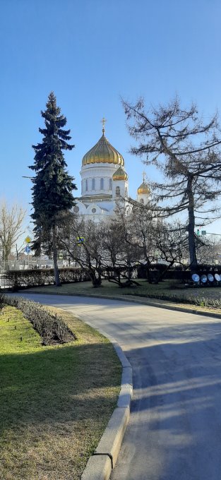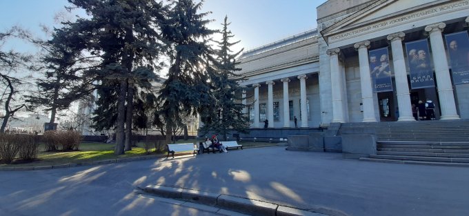 Возле Пушкинского музея расцвели замечательные первоцветы, а на