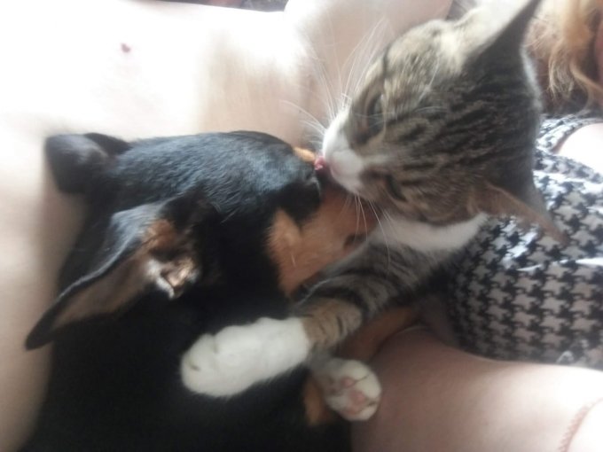 После ужина я пошла на улицу, чтоб взять тарелку Киры и покормить ее, захожу в дом и вижу такую картину. Арчи лежит на кресле, муж сидит перед ним на корточках, гладит его и говорит: