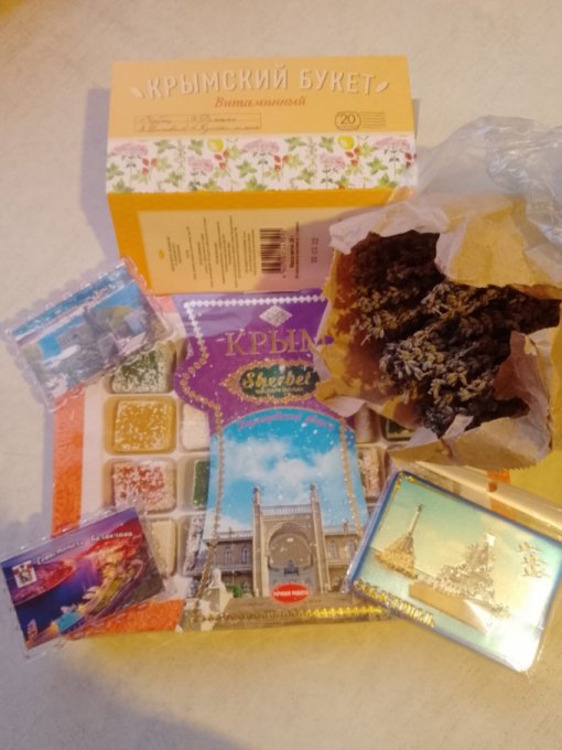 Посылку я получила быстро, как то странно, но очереди ожидаемой на почте не было, вот это и странно, обычно ведь там бабулечки толпятся Получив посылку в руки, я не смогла дотерпеть до дома и вскрыла ее сразу в машине….ммммм сразу же услышала запах лаванды))) Леночка положила веточку лаванды, это прекрасно!!!! Конечно же там еще лежали магнитики с фонами Севастополя, это первые магниты из этой части России на моем холодильнике, травяной чай,  который мы в этот же вечер попробовали, вкусненько!!! А еще в посылочке лежала коробочка конфет ручной работы)))) которую хотели отжать мои домашние, аргументирую это словами