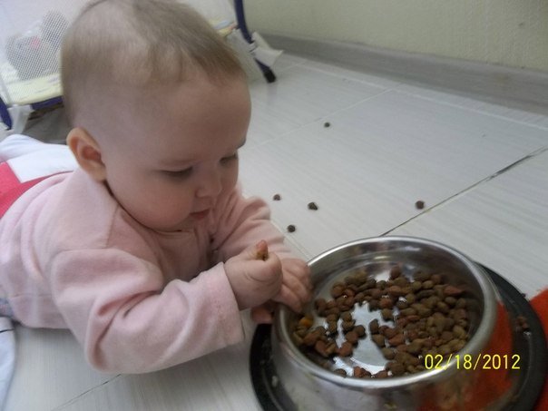 "Родители застукали ребенка за поеданием кошачьего корма. Корм отобрали, рот прополоскали. Отец читает состав: - Пшеница, просо, горох, морковь, картофель, витамины А, С, D, Е. Мать задумчиво: - Может, ему еще дать?"