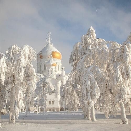 стены и купола храма покрываются снегом, и тогда он выглядит как в