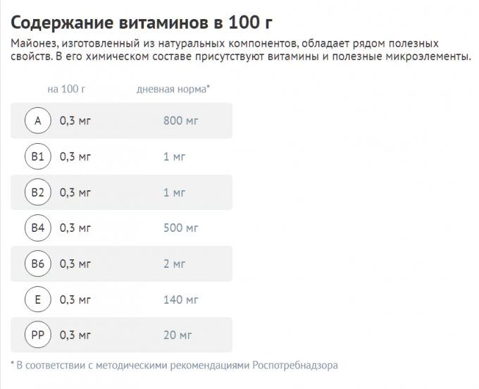 обеспечивает присутствие в майонезе калия, витаминов группы
