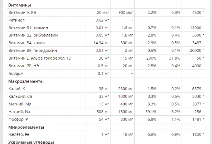 Еще в составе нашелся бета-каротин, витамины группы В, D, Е.