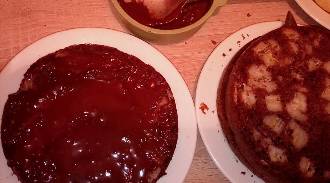 Ну и дальше по той же схеме: второй корж, немного крема, шоколадная
