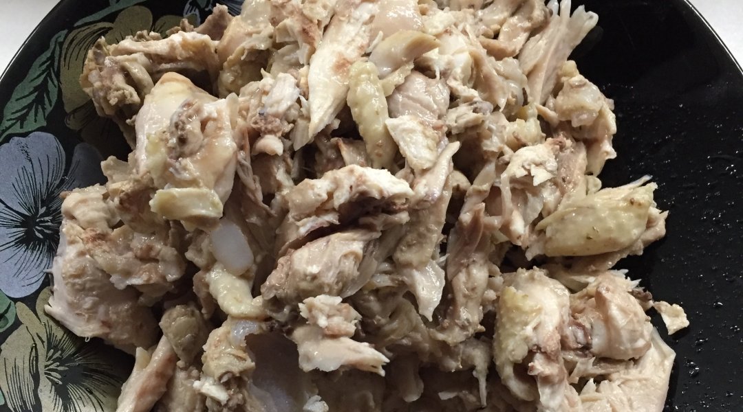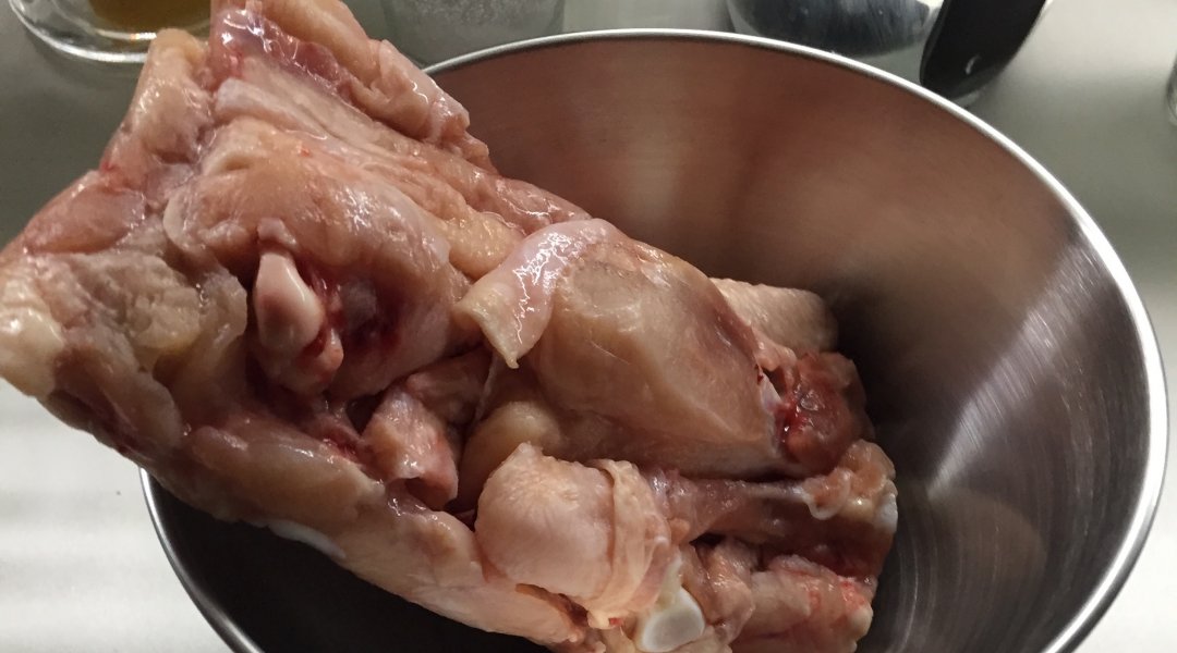 Беру куриный суповой набор с одного цыплёнка-бройлера (шея, хребет, крылья, немного грудки). Вес в замороженном виде вместе с костями около 900 г. Кожи очень мало.