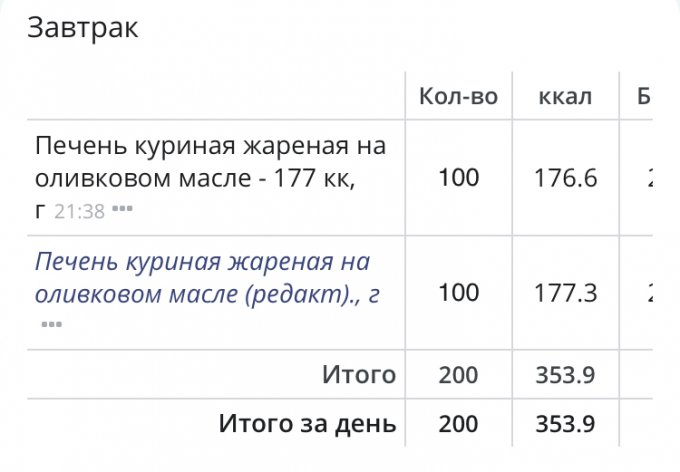 | Кол-во | Калории | Белки | Жиры | Углеводы | |
