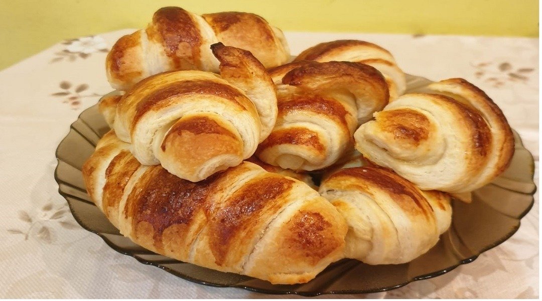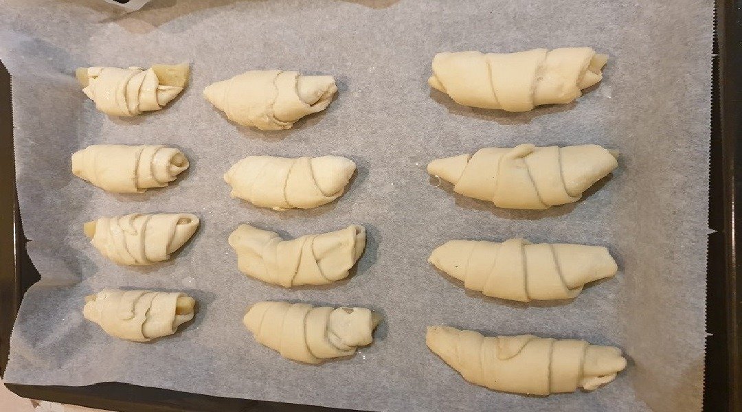 Рогалики с ананасом из дрожжевого слоеного теста