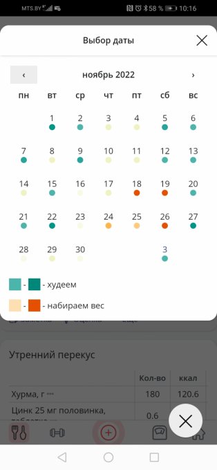 Чтобы увидеть отчеты по питанию и график веса, необходимо войти.