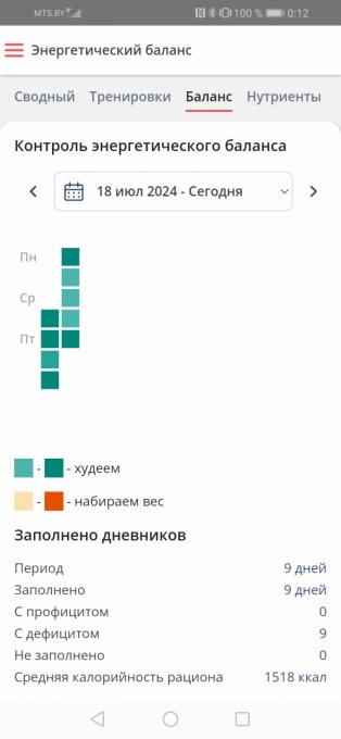 Чтобы увидеть отчеты по питанию и график веса, необходимо войти.