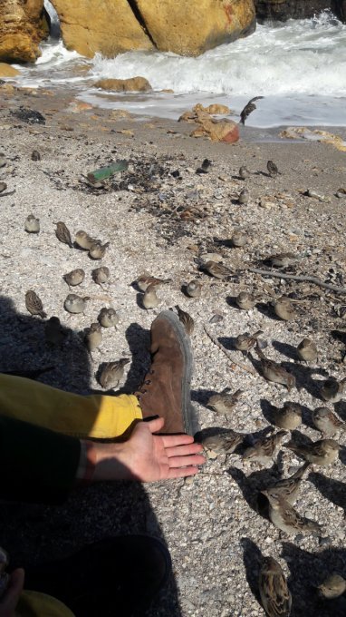 Выбралась к морю на фотосессию. Фотограф взял с собой булку. А тут