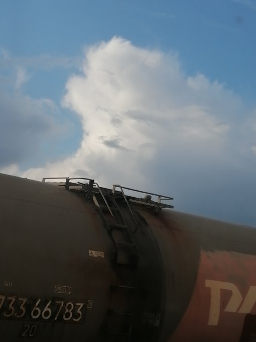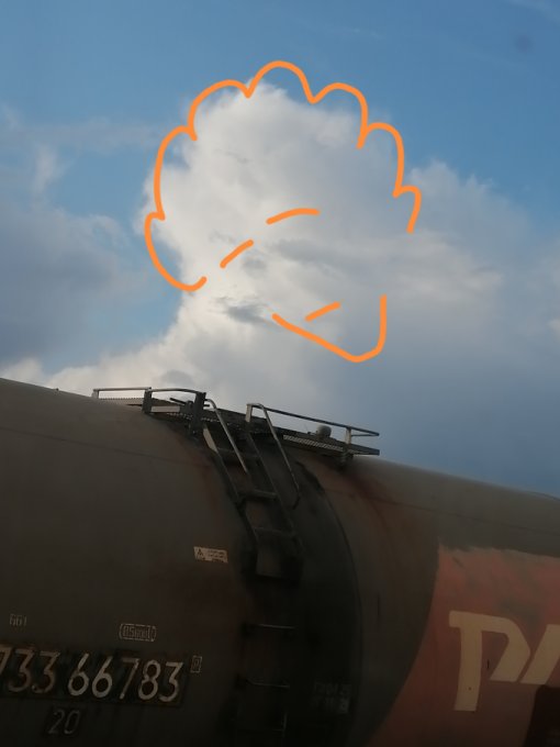 Доброго вечера всем! Пока ждём регистрацию решила записать примерно, что слопала в поезде. Много.... По дороге сфотографировала интересное облако🤗! Послала детям. Младшая сказала, что это животное, старшая вообще ничего не увидела, зять старший сказал, что это просто туча. А почему я тогда вижу демонического человека😉🤗🥴?