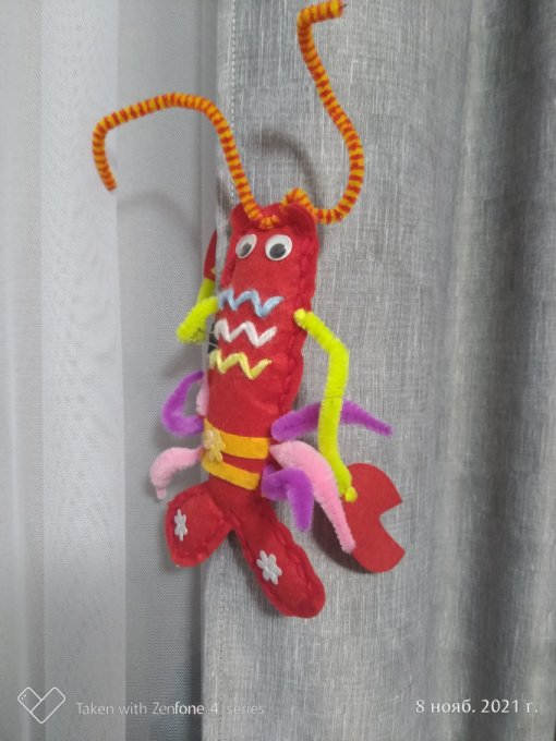 Доброго вечера всем! У меня он получился очень добрым. Внучка сделала мне вот такой подарочек! Делала с мамой, скрывали от меня, заранее не показывали. А я только ахнула! Повесила дома на шторку. Любуюсь! Глазам так тепло от любви мои девочек, которую излучает этот рачок!!!
