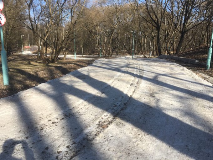 На ролики не попал вчера - трасса еще в снегу (фото ниже)