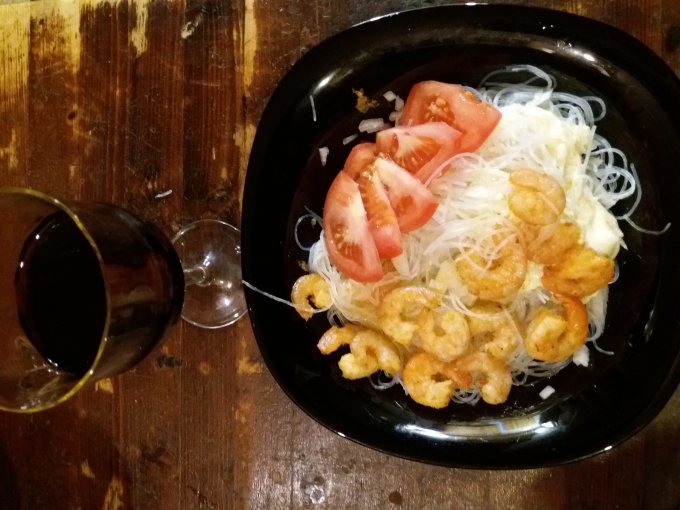 Отличный день без дождя. Завтра начинаются трудовые будни выходные это хорошо но охота уже поработать. Сходила сегодня на тренировку прошла 5 км и это радует, записала котика на прививки, а вечером приготовила салат с креветками и фунчозой и вино побаловала себя немного.