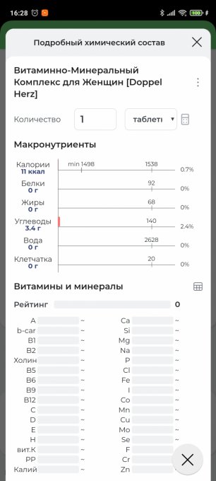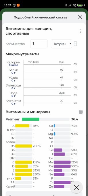 витаминов и м.э. в еде. В принципе все реально, к 100% выполнению