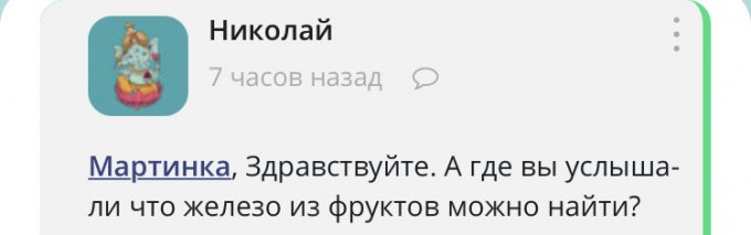 Здравствуйте. А где вы услышали что железо из фруктов можно найти?
