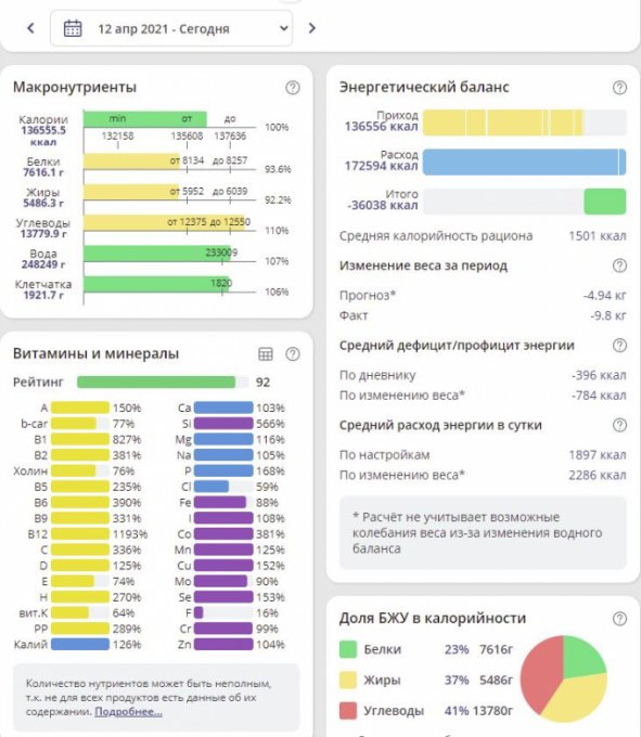 | Итого за день | 2850 | 1366 | 79 | 59 | 125 |