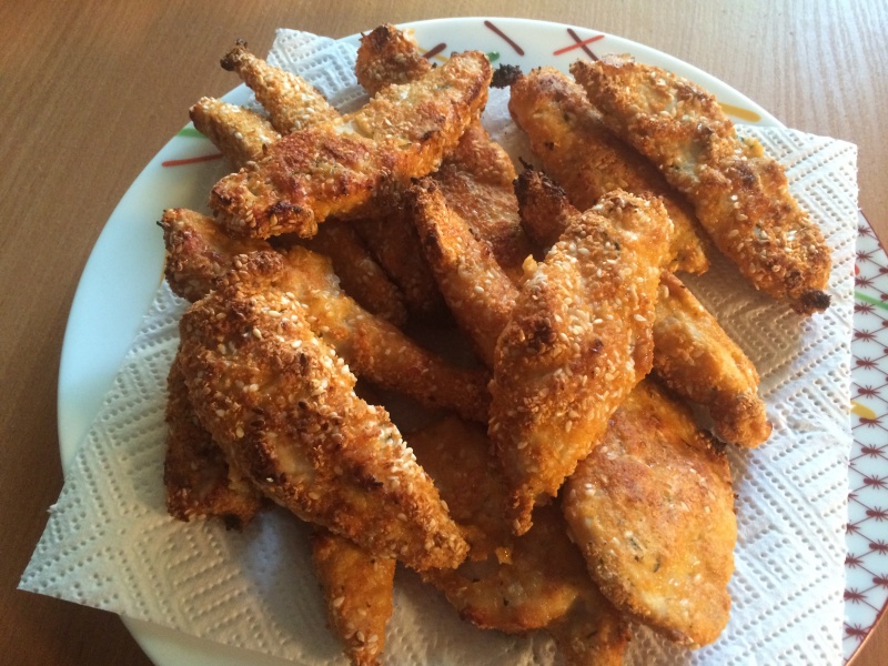 травами (на ваш выбор). Кунжут смешать с панировочными сухарями и