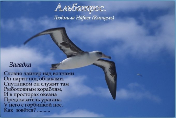 • Помимо глобального потепления, этим птицам угрожает загрязнение воды в океане пластиком, рыболовецкие суда, которые случайно их убивают, и даже мыши, которые разоряют их гнезда. Очень хочется надеяться, что учреждение Дня Альбатроса станет одним из шагов на пути к сохранению этих удивительных птиц.