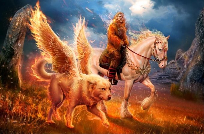 🔸Исследователи славянской мифологии высказывают несколько версий о Семаргле. Наиболее часто встречается мнение, что Семаргл - это Огнебог, относится к древнейшим могущественным божествам, отождествляется с богом огня Сварожичем (верховный бог у древних славян). Именно с огнем в славянской мифологии связано возникновение людей. Огнебог зажигает пламя любви, способствуя продолжению рода, охраняет мир от зла, творимого черными силами, дает людям свет, тепло и огонь, хранит дом и очаг, является посредником между людьми и Небесными Богами. Семаргл - Огнебог принес на землю побег дерева жизни и поэтому он способен исцелять от различных недугов людей и животных. Он вселяется в тело и души больных и излечивает каждого, кто обратился к нему за помощью. Поднявшаяся температура явный признак, что священный крылатый пес неистово сражается с хворью. Чем выше температура, тем яростней сражение.