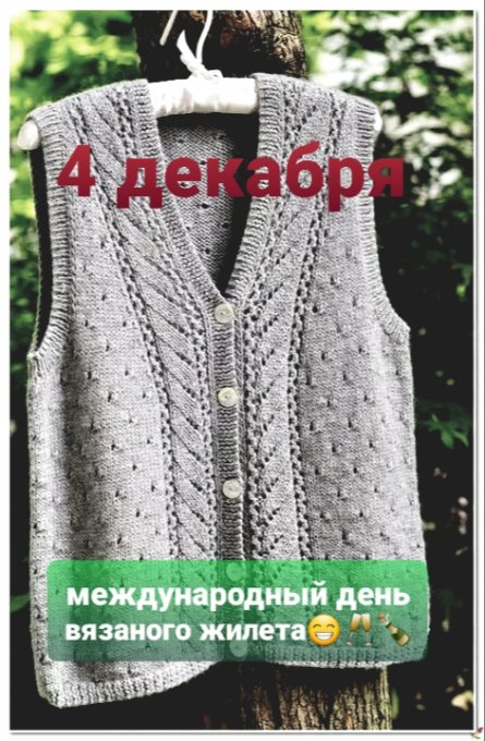 4. Международный праздник вязаного жилета, с 2008 г. Самый простой способ отпраздновать День вязаного жилета — надеть вязаный жилет, сфотографироваться и выложить фото в социальных сетях с хэштегом #vestival (образованным от английских слов vest — жилет и festival — фестиваль). Но можно пойти дальше и подарить вязаные жилеты друзьям или даже устроить вечеринку с дресс-кодом, на которую все должны прийти в вязаных жилетах.