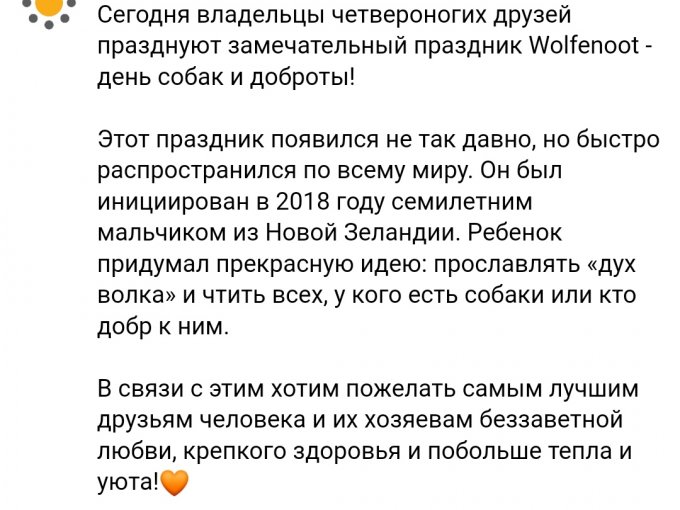 7. День дворняги. Главная цель Дня дворняги — празднование смешанных пород собак, просвещение людей об их удивительных характеристиках и поощрение общественности к спасению дворняг. В каждом дворе нашей страны, находятся люди которые ежедневно кормят дворняг и кошек и собак. Спасибо им за доброту!