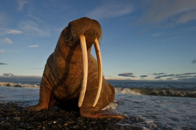 __В дикой природе моржи живут около 30 лет. Большую часть времени эти млекопитающие проводят на берегу, где стараются держаться большими группами – от 10 до нескольких тысяч особей. Моржи питаются рачками, моллюсками и беспозвоночными, а также рыбой.