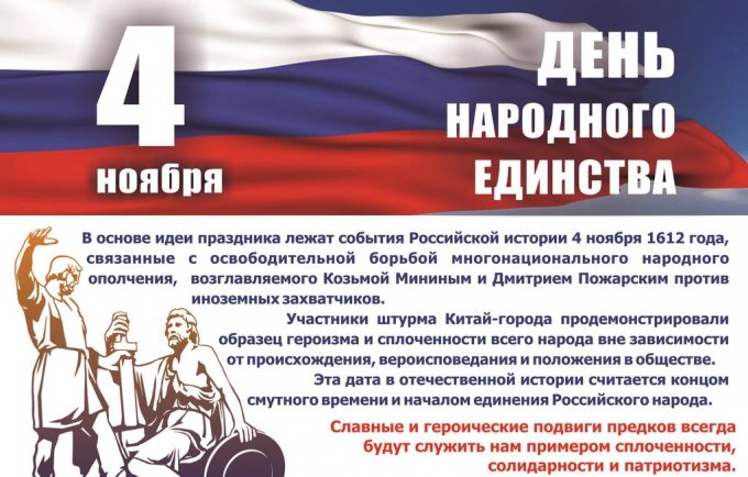 _Сегодня в России День наро́дного еди́нства,отмечается с 2005 года в честь окончания Смутного времени.Сму́тное вре́мя-период в истории России 1598-1613, некоторые считают до 1618, ознаменованный стихийными бедствиями,сопровождающийся многими самозванствами и внешним вмешательством. Постаралась по-возможности сократить, но событий было очень много.