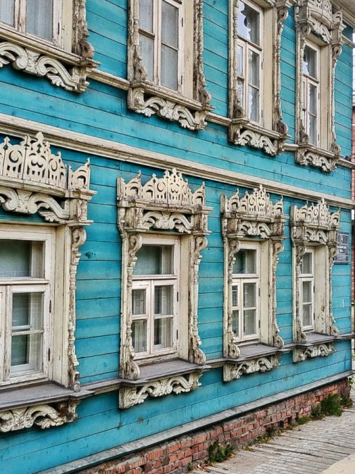 ___ Очень устала сегодня. Прошла быстрым темпом на жаре в 32 градуса около 12000 шагов. За день немного перекусила по пути в столовой, потом ещё в магазине купила Ацидофилин, мечниковскую простоквашу и козье молоко и их понемногу пила в течение дня. По пути сфотографировала пару старинных деревянных домов 19-го века.