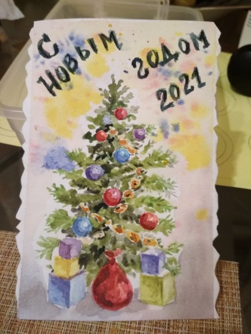 А это моя открытка, рисовала в прошлом году. В этом ещё не делала.