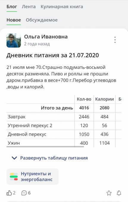 | Итого за день | 2100 | 1296 | 52 | 47 | 159 |