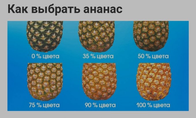 цвета. Мякоть ананаса на 86 % состоит из воды, в ней довольно много