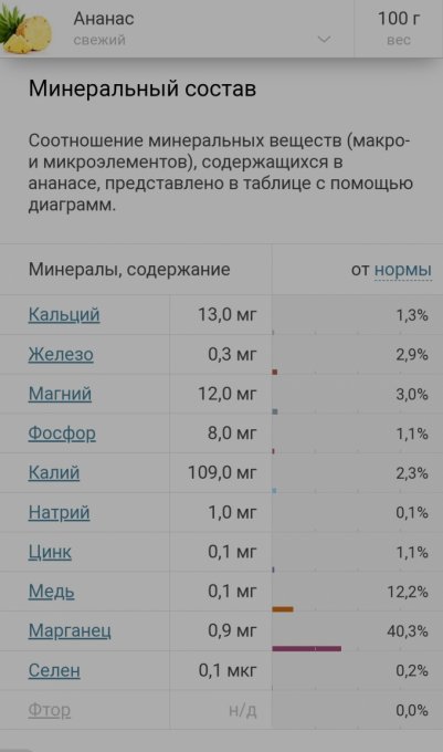 марганцем, йодом. Очень полезным в ананасах является фермент